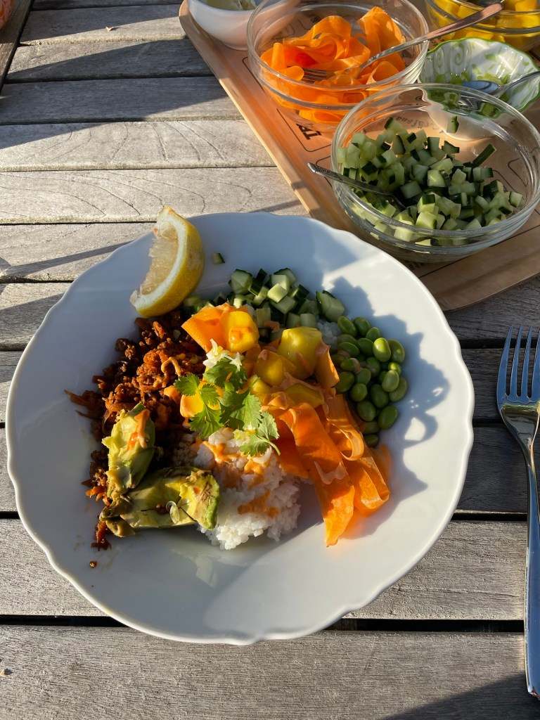 Efter mycket stress, ångest och pms var det så skönt att lämna stan och bara vara. Anna hade förberett en otrolig middag med grönsaker, mango, koriander, ingefära och vegfärs, som tillsammans kombinerades till vietnamesiska sallads-bowls. Efterrätten bestod av hemmagjord tiramisu med hallon. Det var så gott, och så omtänksamt, att jag höll på att smälla av.