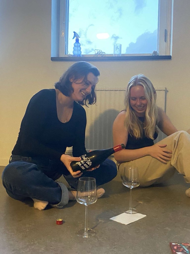 Då jag ännu inte hade några möbler i lägenheten satt jag och mina vänner på golvet, bland tomma sushi-lådor och engångs-pinnar. Vi drack ett nytt rödvin från Portugal som jag köpt på systemet för att bjuda på. Portugisiska viner ska tydligen vara underskattade. Det kändes ovant när jag plockade fram chokladen jag inhandlat, för nu hade jag äntligen min första bjudning i mitt eget boende med saker jag köpt.